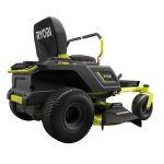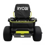 Easily mow your large yard with this Ryobi 48V zero turn riding lawn mower. Instead of using gas, this mower is powered with 100 Ah lead acid batteries with two and half hours of run time. This quiet mower only emits 70 dB of sound so you don’t disturb your neighbors. Premium features like LED headlights, USB phone charger and cruise control make this a top-of-the-line choice. The 42 in. two blade deck has 12 positions and the rear access charging port makes charging this mower simple. Up to three acres per charge Four high-powered brushless motors 42 in. heavy-duty steel deck Two precision cut steel blades 12 position manual deck adjustment Side discharge, mulching or bagging capable (bagger accessory available online only) 1.5 in. to 4.5 in. adjustable cutting height Low maintenance: no belts, spark plugs or filters Battery operated: quiet cutting, no gas, fumes, charge and go Control panel: battery level indicator, unit hour meter, USB charging Easy access rear charging port Charges through standard 120-volt outlet Includes towing hitch and tow assembly hardware Replacement Battery: Leoch model LPC12-100